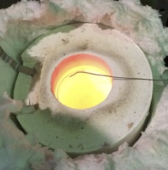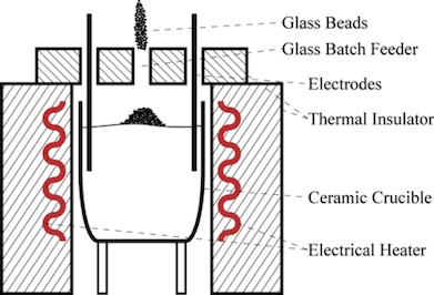 ヒーター加熱炉中にるつぼを設置,熔融状態としたガラス中に電極棒を挿入する.